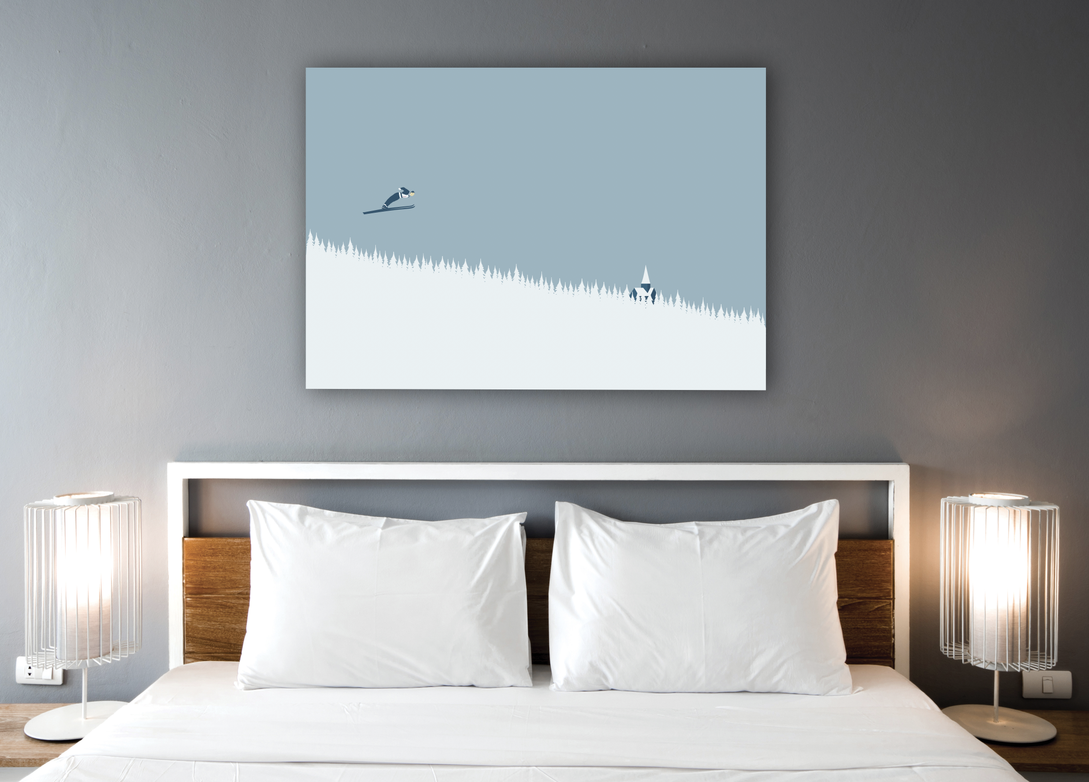 Under Vinter-OL i 1952 tok Arnfinn Bergmann hoppgull foran 120 00 tilskuere på hjemmebane i Holmenkollen. Nå henger skilegenden på 200 vegger i Clarion The Hub, hotellet som først ble bygget til folkefesten for snart 70 år siden. Stordalens nye flaggskip ble denne måneden gjenåpnet som landets største hotell etter en større ombygning - og til de 810 rommene på hotellet leverte Wallstories flere spesialdesignede motiver og til sammen over 1600 bilder. (Bildene under illustrerer motivene i et miljø, de er ikke tatt på Clarion The Hub)